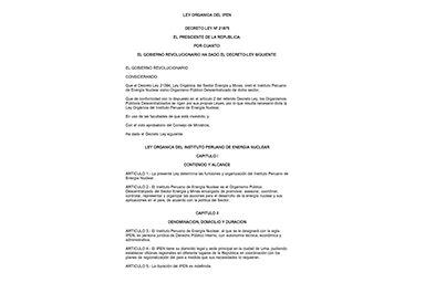 Mediante Decreto Ley N° 21875 del 05 de Julio se aprueba la Ley Orgánica del IPEN.