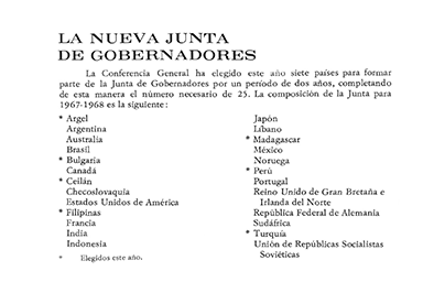 El 26 de Setiembre el Perú participa como miembro en la Junta de Gobernadores del OIEA, en su calidad de Fundador de dicho Organismo .