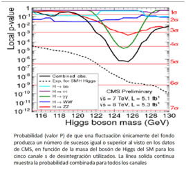 La confiabilidad de los resultados se basa en el hecho que en el CMS, con 95% de confianza el bosonde Higgs, no podría estar en los intervalos 110-122.5 GeV y 127-600 GeV. Y que los resultados observados por los cinco canales (g, ZZ, WW, bb y ττ) en el intervalo 122.5 – 127 GeV, manifiestanvía las distribuciones de masa que: “la significación estadística de la señal a partir del ajuste combinado a ellos es de 4.9 sigmas sobre el fondo. Mientras que combinando solo dos de los canales más sensibles la significancia es de 5.0 sigmas”. Con ello la masa estimada para la nueva partícula es 125.3 +/- 0.6 GeV. Y, adicionalmente que la tasa de producción medida (sdat) está de acuerdo con la tasa predicha estándar (ssm) para el bosón de Higgs del modelo estándar: (sdat) / (ssm) = 0.80 ± 0.22. Estos datos provienen de lo acumulado el año 2011 y 2012. Pero como científicos ellos no han dicho que sí es el bosón de Higgs, para hacerlo deberán medir otras características, la cuales serán la tarea durante el presente año. Como lo describió el director general del CERN el Dr. RolfHeuer, “es como descubrir la cara de un amigo en una muchedumbre: para estar seguro de que se trata de él y no de su gemelo hay que acercarse y comprobar sus detalles”.